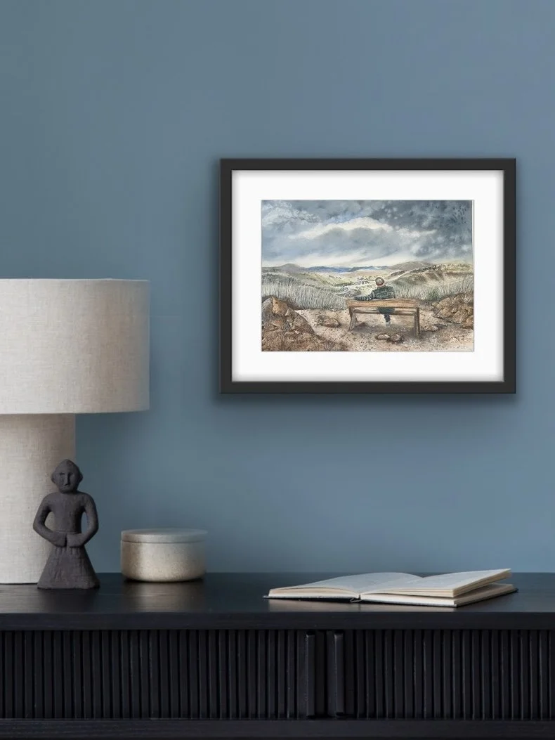 Image size is 16” wide by 12” tall. Painted on 100% cotton paper and packaged with an archival backing board and 2” mat in a clear sleeve - ready to frame.