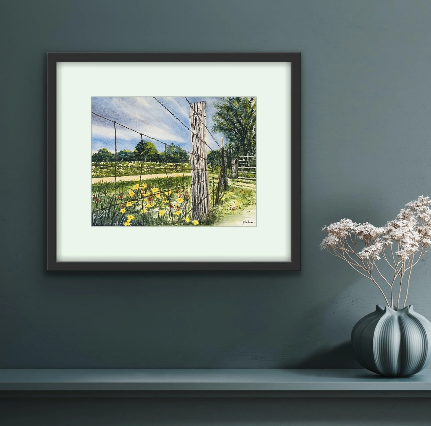 Discover the serene beauty of rural central Texas with 'Still Standing', an original watercolor painting that transports you to the tranquility of a countryside scene.